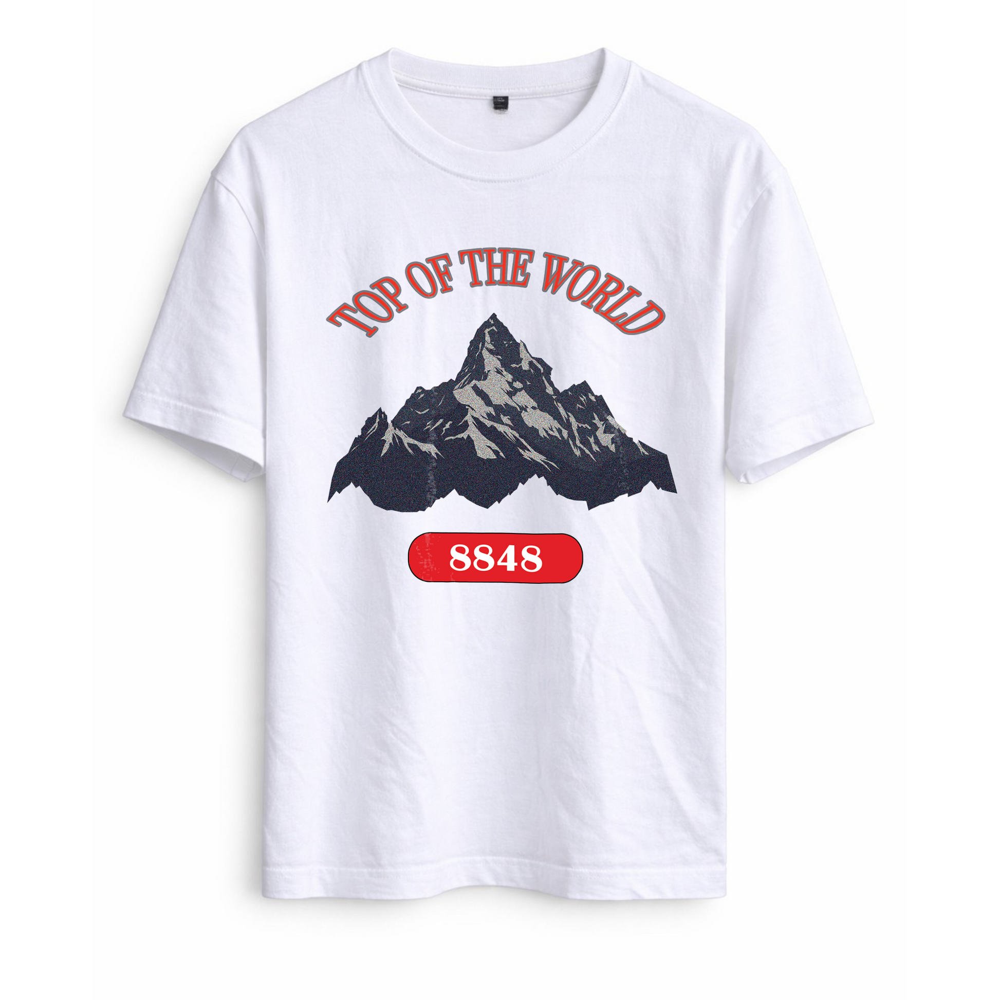 Premium 220 GSM heavyweight t-shirt made from 100% combed ring-spun cotton. Pre-shrunk, anti-pill, and built with side seams to keep the fit sharp and twist-free. Finished with a striking Mount Everest DTF print stamped with “Top of the World.” Wear the peak.